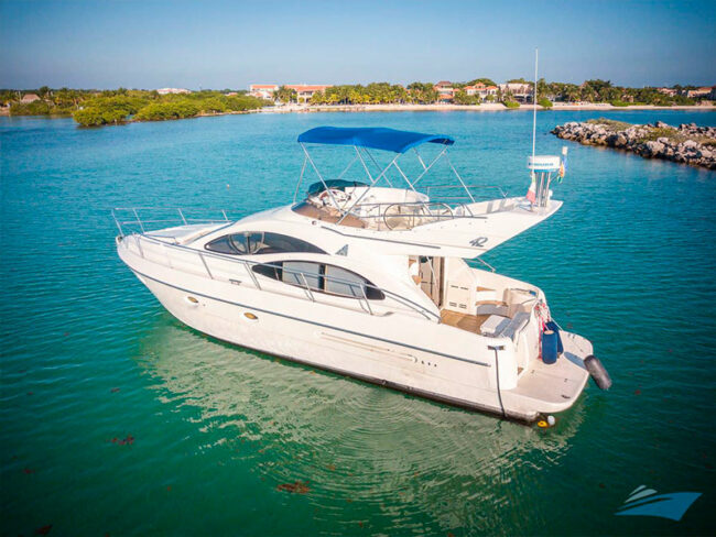 It features plenty of shaded seating areas at the back of the yacht where you will get to enjoy our open bar, a delicious guacamole and ceviche and of course our Bluetooth speaker system….
