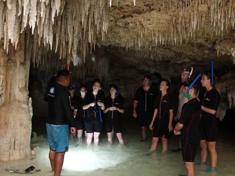 We will visit an exclusive cenote, a sacred place for the ancient Mayan civilization, where we wil swim and explore one of the incredible undeground caves of the Yucatan Peninsula where we will have the opportunity to appreciate the ancient formations of stalactites and stalagmites that together with the rays of light filtered through the small orifices in these limestone caves make them a nature’s work of art.