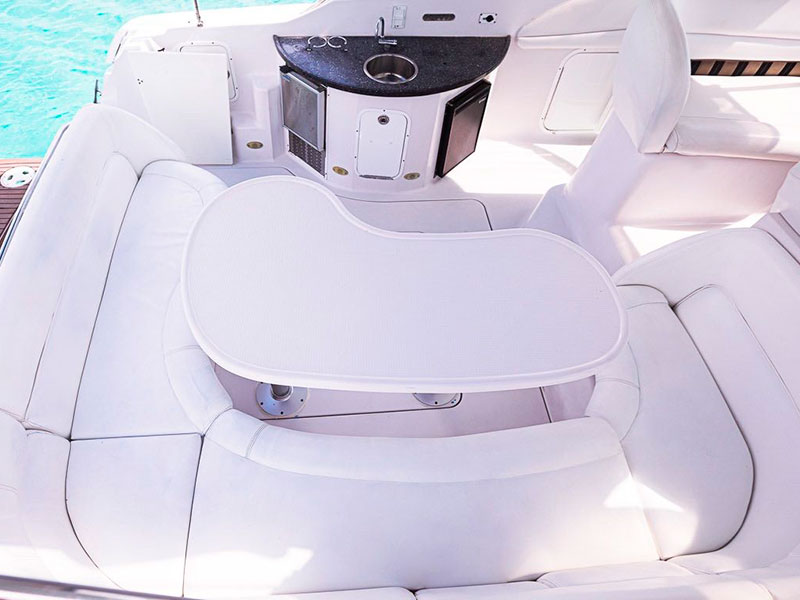 This yacht comes with a large shaded where you will get to enjoy your own music with our Bluetooth speaker system as you get a refreshing drink from our open bar, it is also here where you will get to eat a delicious guacamole & ceviche.